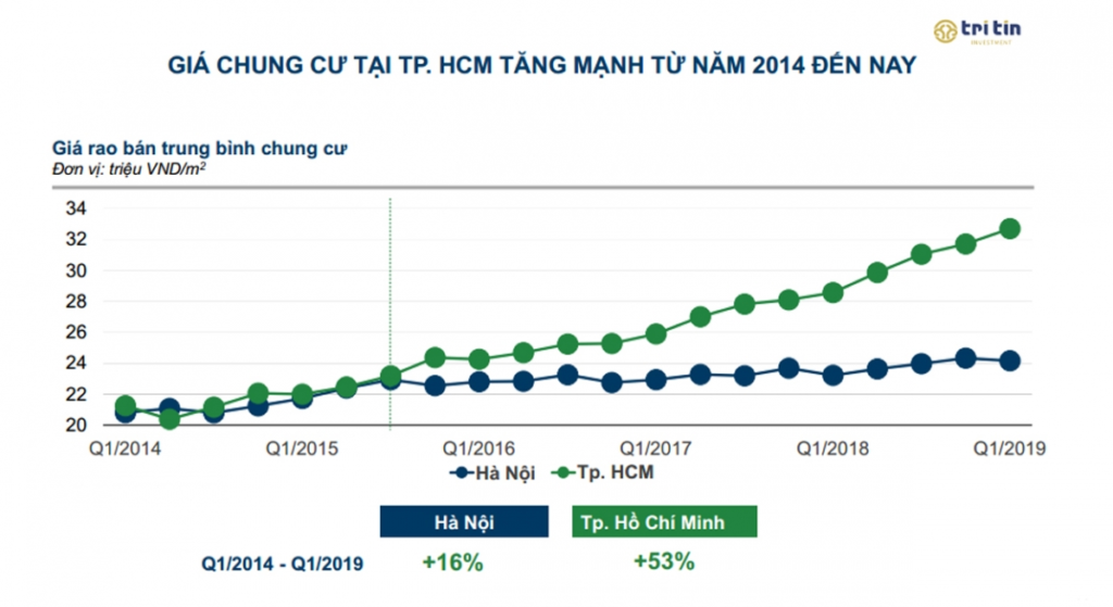 Nên có thế nói năm 2019 là giá đi ngang, mặc dù đỉnh giá vẫn tiếp tục thiết lập ở mức cao ở đại đa số các dự án căn hộ (có định danh là “hiện tượng ngáo giá”) ở khắp nơi đặc biệt nổi tiếng nhất là Vinhomes Grand Park thiết lập mặt bằng giá cao nhưng giao dịch thẩm thấu trong dân, khách cuối còn ít (là căn cứ để các CĐT khác tiếp tục thiết lập mặt bằng đẩy giá cao lên).