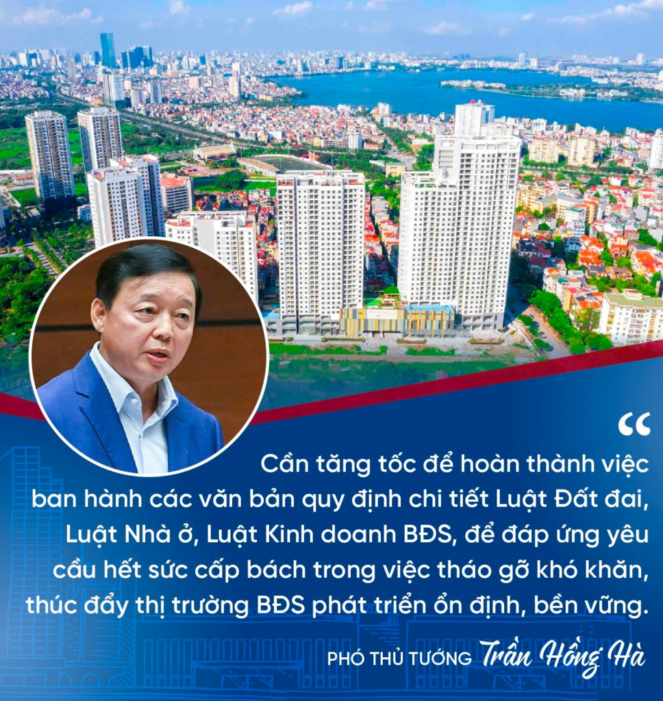 Trước thực trạng nhiều địa phương còn bỡ ngỡ trong việc thực thi, cũng như chậm trễ trong việc ban hành các văn bản dưới luật, tại Hội nghị trực tuyến toàn quốc về tình hình triển khai Luật Đất đai 2024, Luật Nhà ở 2023, Luật Kinh doanh BĐS 2023 mới diễn ra, Phó Thủ tướng Chính phủ Trần Hồng Hà nhấn mạnh việc xây dựng, ban hành các văn bản quy định chi tiết thi hành các Luật là yêu cầu từ thực tiễn, hết sức cấp bách nhằm tháo gỡ khó khăn, vướng mắc, triển khai các cơ chế, chính sách mới, tạo thuận lợi hơn cho quá trình phát triển kinh tế – xã hội. Đây cũng là nguyện vọng của cấp ủy, chính quyền, các đoàn đại biểu Quốc hội, cử tri, nhân dân các địa phương.