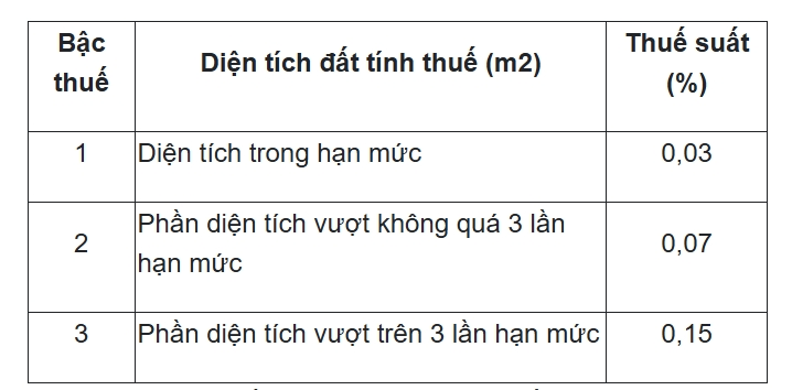 Lưu ý: Hạn mức đất ở làm căn cứ tính thuế là hạn mức giao đất ở mới theo quy định của Ủy ban nhân dân tỉnh, thành phố trực thuộc Trung ương.